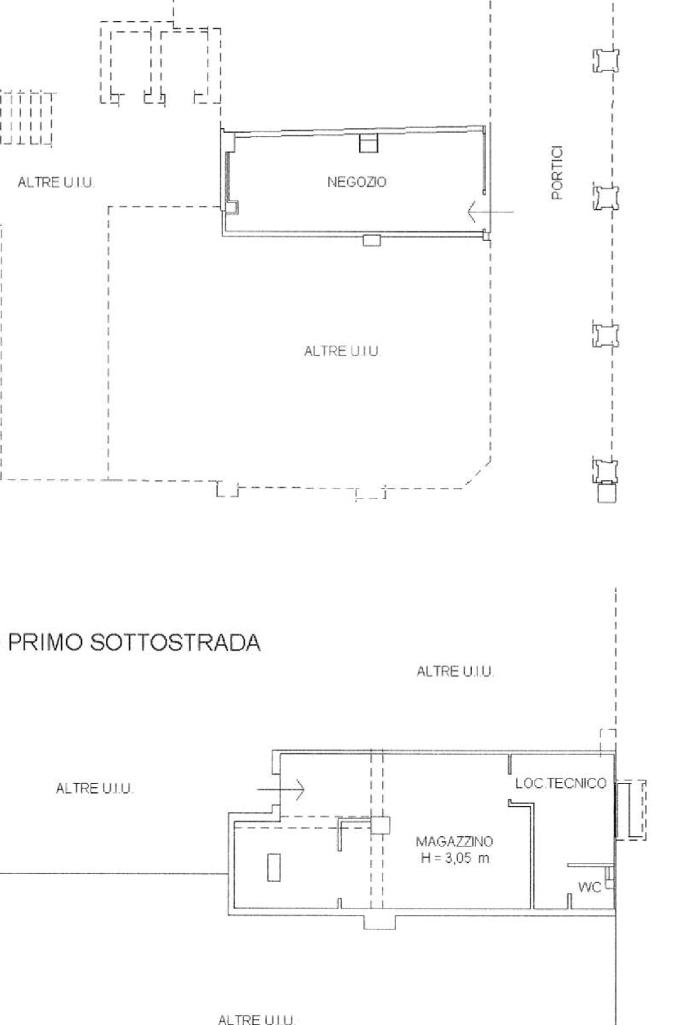 Il negozio è composto da un ampio locale principale e un bagno al piano interrato, garantendo funzionalità e praticità.